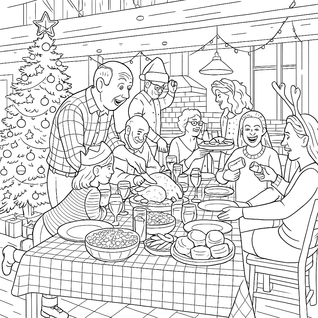 When transforming your photos into Christmas coloring pages, you can add simple festive elements that make them perfect for the season. Here are some classic Christmas themes that work beautifully with personalized drawings: